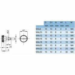 | DiamĂštre(mm)Â | M4x10, M4x20 |