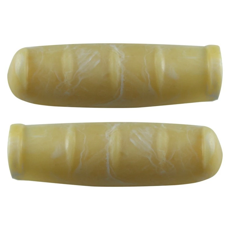 Paire de poignées vintage jaune marbré ;